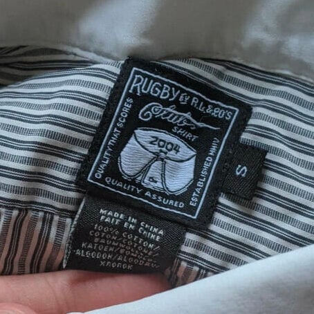 Bear in mind that the Rugby line features a multitude of different tags, particularly for shirts. A straightforward method to verify authenticity is through the laundry care tags. If these tags are characterised by nearly indistinguishable, embroidered, or stitched lettering, then the item is likely to be genuine.