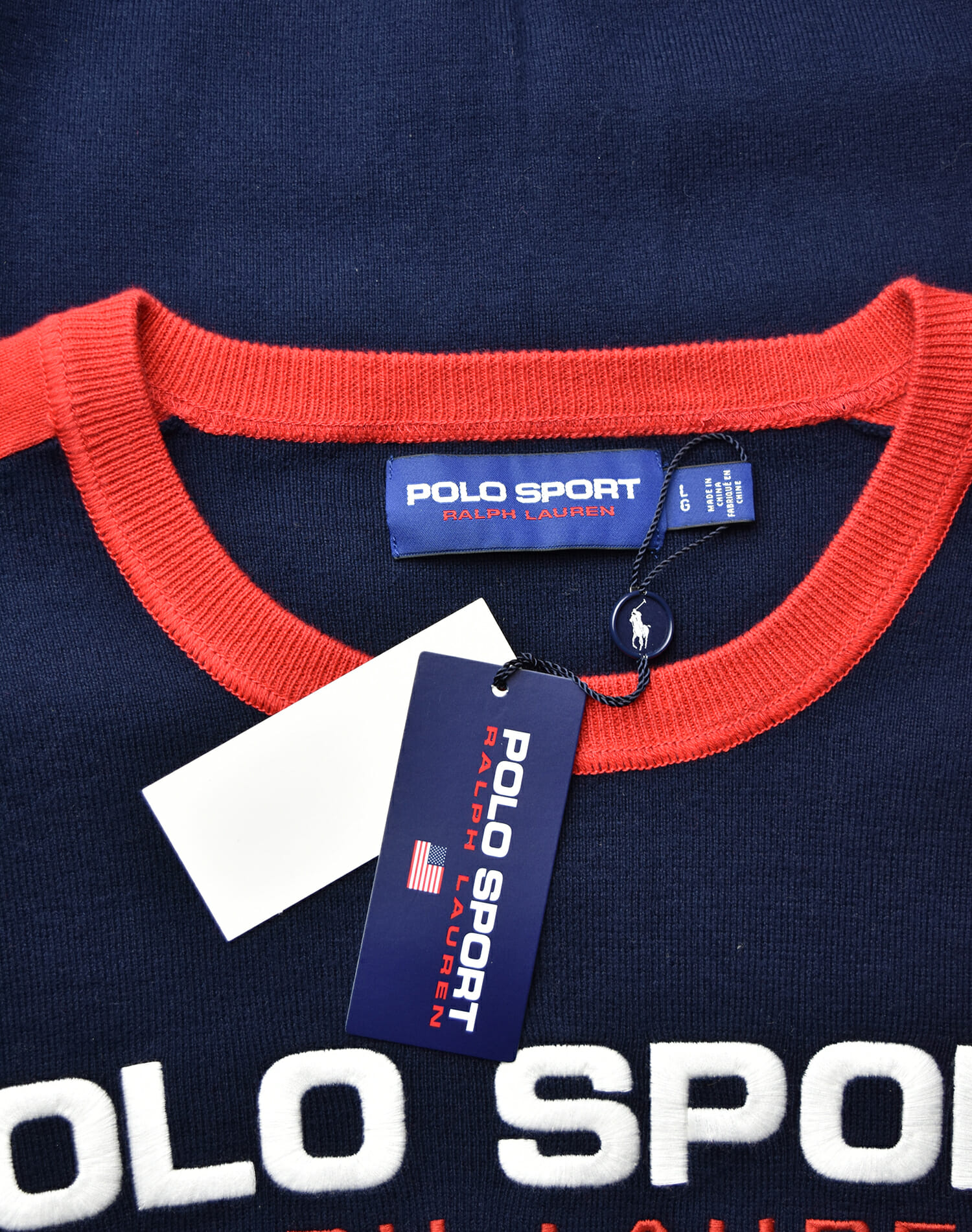 The logo for Ralph Lauren Polo Sport remained consistent throughout the brand’s original run, displaying the text “Polo Sport Ralph Lauren”. The brand was discontinued in the early 2000s therefore making it relatively easy to date items from the vintage collection.